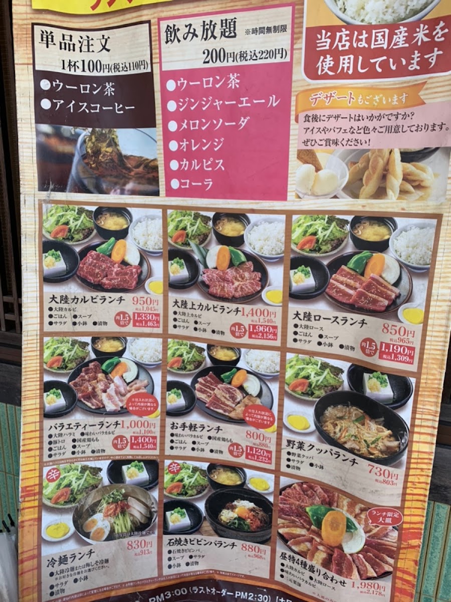 The menu is meticulously curated, offering options that appeal to both meat lovers and those looking for a savory lunch. The カルビランチ (Kalbi Lunch) at just ¥1,045 exemplifies value, featuring a hearty serving of tender meat with complimentary rice and miso soup, ensuring satisfaction without breaking the bank.